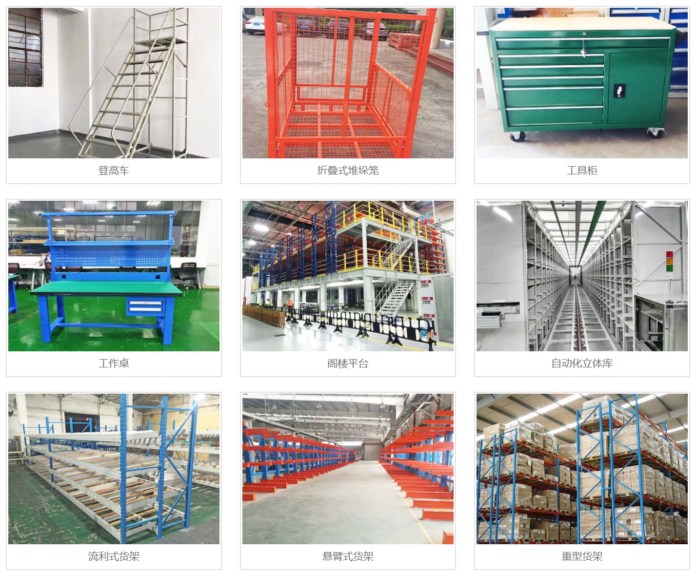 工廠主要生產(chǎn)有:重型貨架,閣樓貨架,鋼結(jié)構(gòu)平臺(tái),橫梁式貨架,模具貨架,懸臂貨架,流利式貨架,駛?cè)胧截浖艿认嚓P(guān)物流設(shè)備產(chǎn)品。
